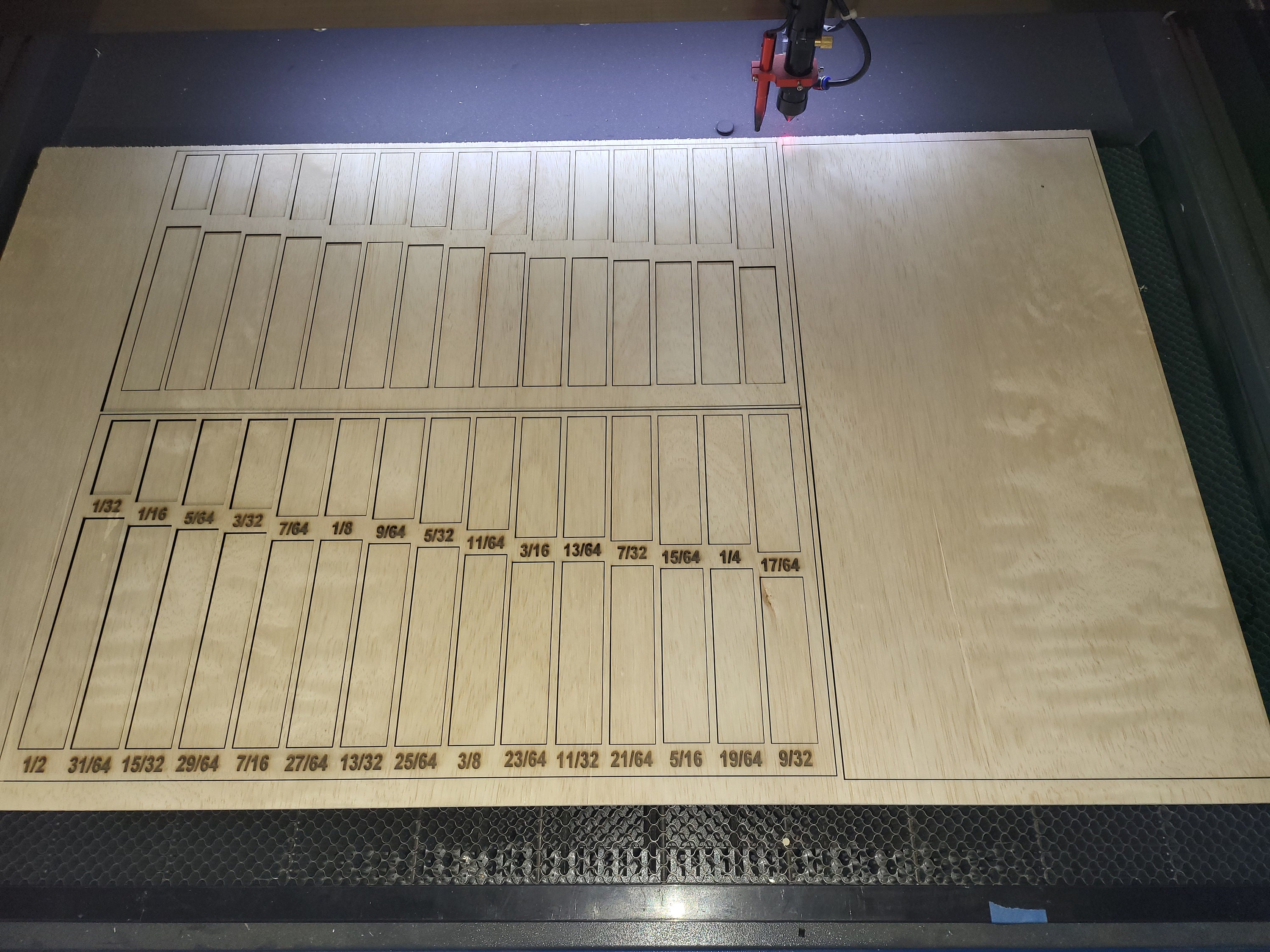 This is not a physical product. This an SVG file. This file includes two different size drill bit organizer/holders in SVG and LightBurn format. Sizes are 11 1/2 x 23 and 11.5 x 28 3/4 pick the one that fits your laser bed best. We made two different sizes to accommodate small and large size lasers. This is cut out and then stacked on top of one another to give you a place to store and organize your drill bits. If you're like me and had a shop for a long time you probably have spare drill bits laying around. Simply cut out on your laser and now you have a place to store your drill bits.
